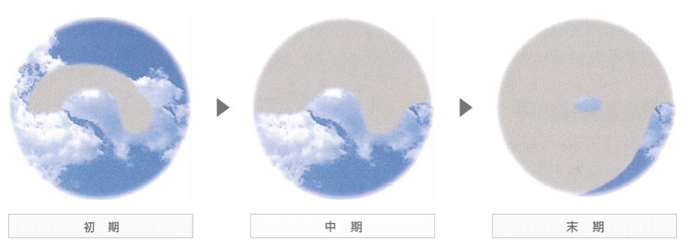 中期、末期にかけて徐々に見えない範囲が広がり始めます。